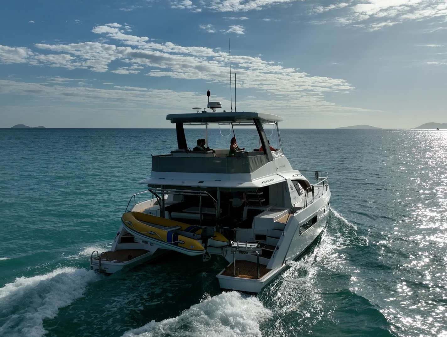 The Leopard 48.4 offers a spacious and breezy ambiance with its expansive cockpit and forward lounge.
