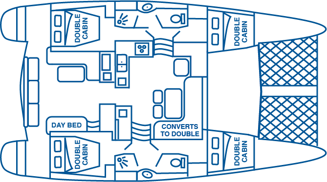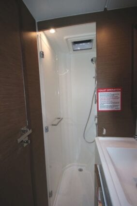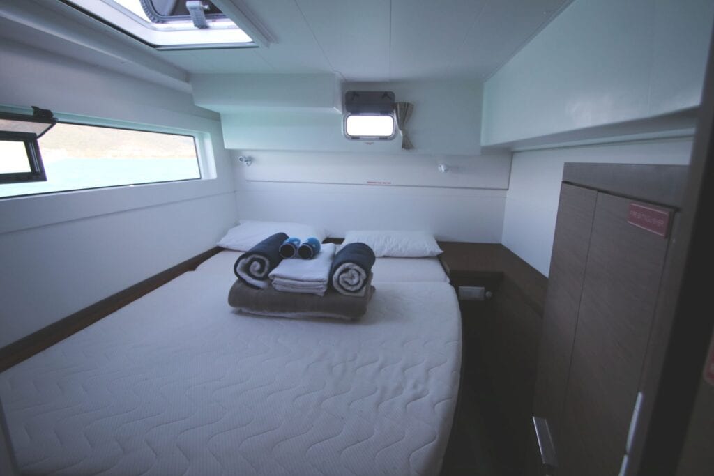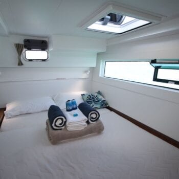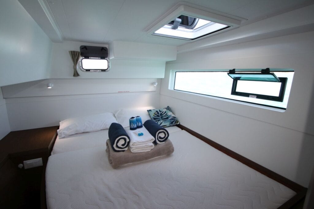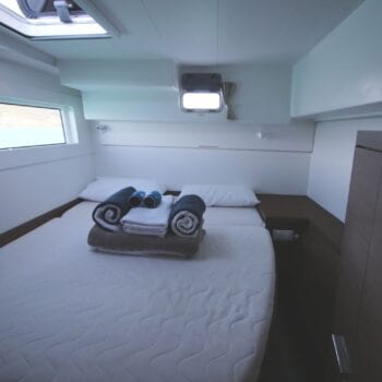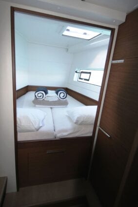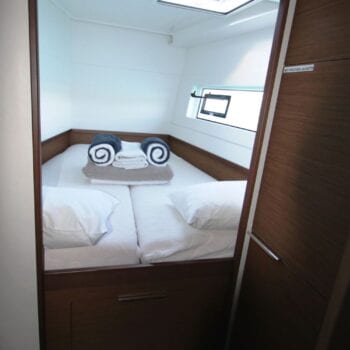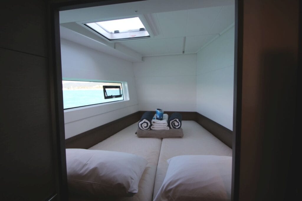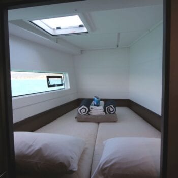 The Lagoon 40.4 G can sleep up to ten. Four double cabins, two bathrooms and the saloon table converts to another double. All cabins feature plenty of hatches and ample head room.