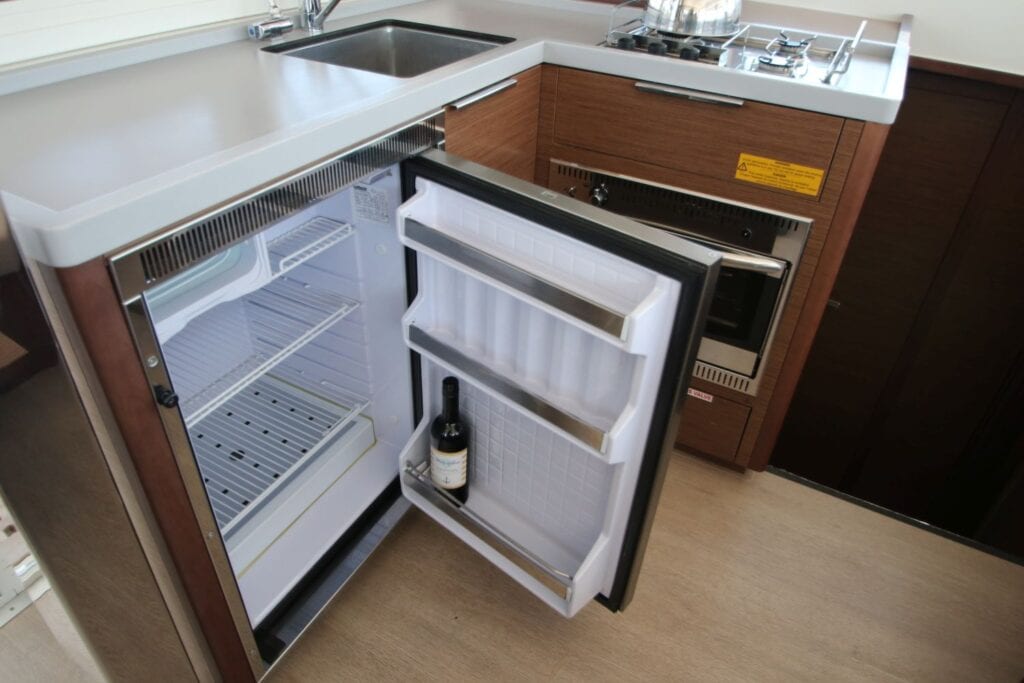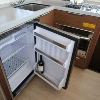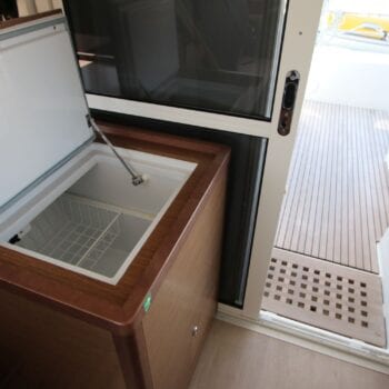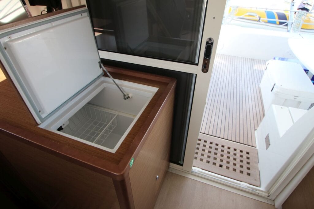 The saloon dining is large and roomy, with a beautiful interior for cruising in style. This model also includes a generator onboard.