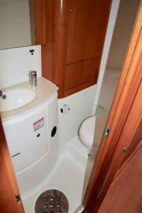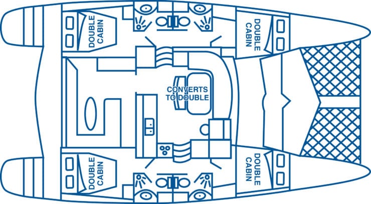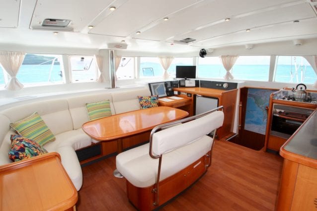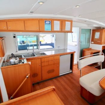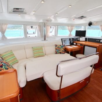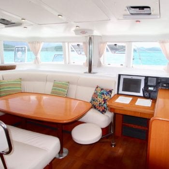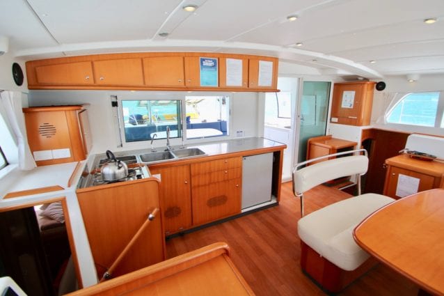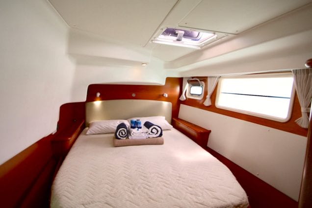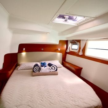 The Lagoon 440.4 can accommodate up to ten in four double cabins and the saloon converts to another double. Each of the four double cabins has its own ensuite bathroom. Plenty of ventilation and a raised flybridge provides comfortable cruising.