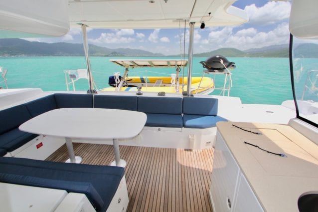 The Lagoon 450.4 features a forward lounge, a spacious cockpit and a generously sized flybridge with daybed.