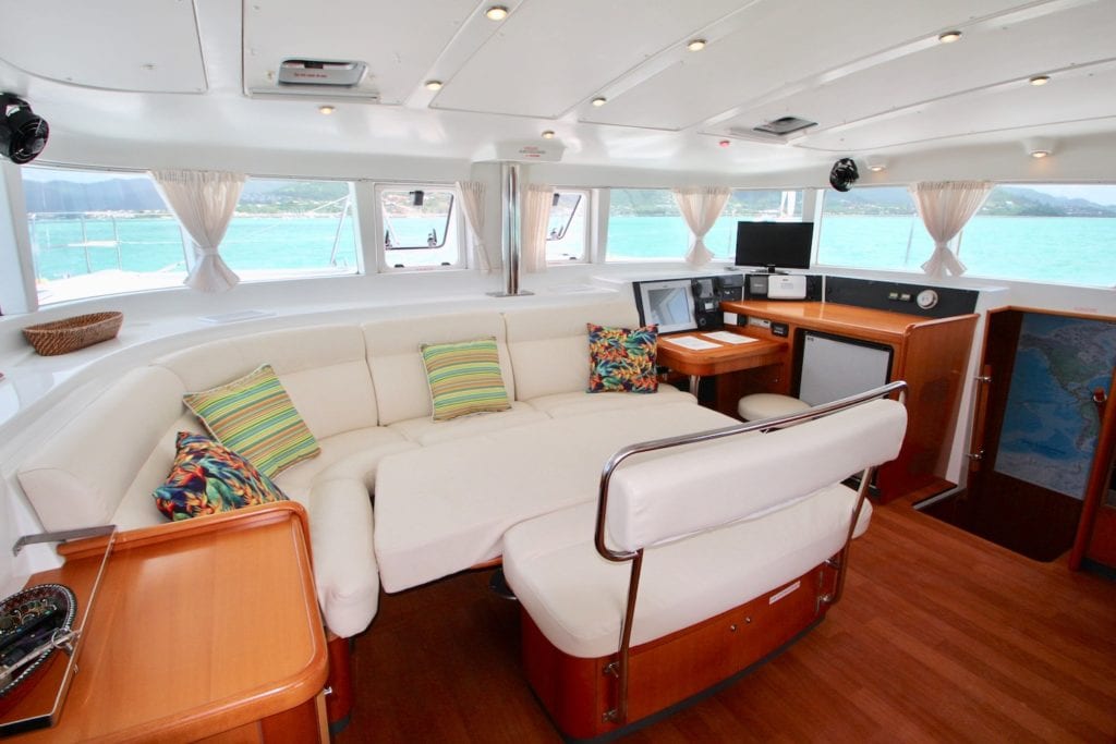 The large covered cockpit features ample seating and adjoins the spacious galley making it an entertainer’s delight! The unique flybridge has shaded seating and is a great vantage point for spotting local wildlife. The lagoon 440.4 also boats a comfortable forward cockpit.