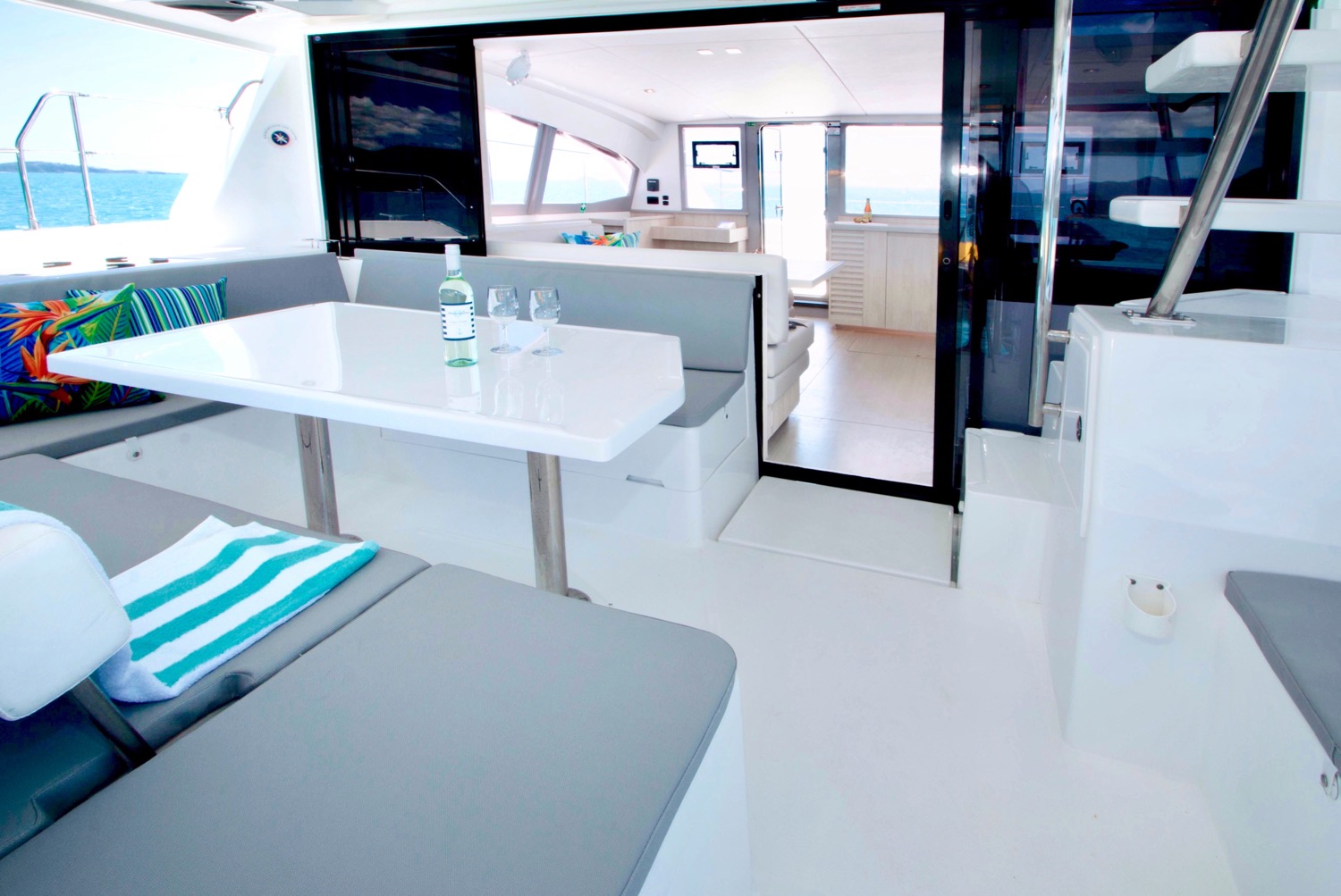 Whitsunday Escape Leopard 43.4 Power Catamaran aft cockpit and interior