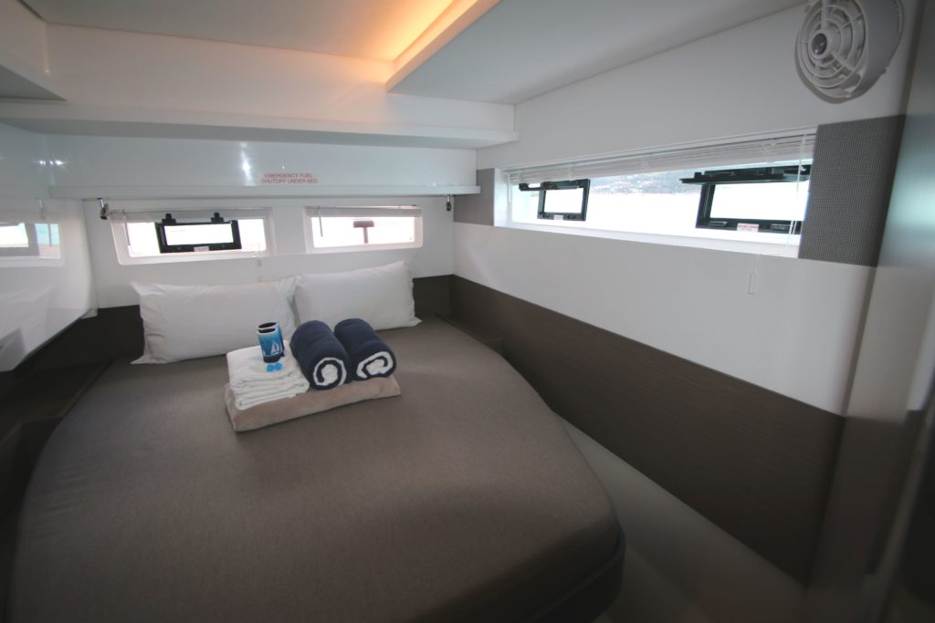 We had 4 spectacular days on Ricochet with friends last week. What an amazing power cat, it felt so spacious and luxurious and we weren’t even the couple who slept in the ‘master suite’!! Beautifully maintained – it feels brand new and is so cleverly designed, no detail overlooked. There’s a BBQ, massive fridge (like I have at home), oven, well – equipped kitchen, so many quiet spots to relax on soft cushions, fantastic sound systems etc.