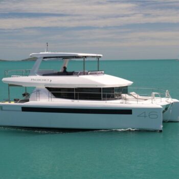 The Leopard 46.3 has undergone a complete redesign, still built with the quality foundation that has come to be expected of the Leopard brand. With a power catamaran orientated style and full length rectangular shaped hull side windows, this new model boasts a sleek elegance with increased natural lighting.