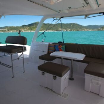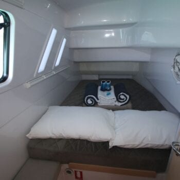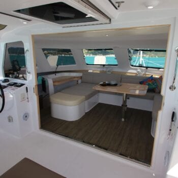 The Seawind 1250.3 integrates the trifold door system optimising ventilation. The cushioned foredeck is a notable feature.