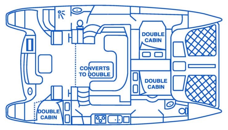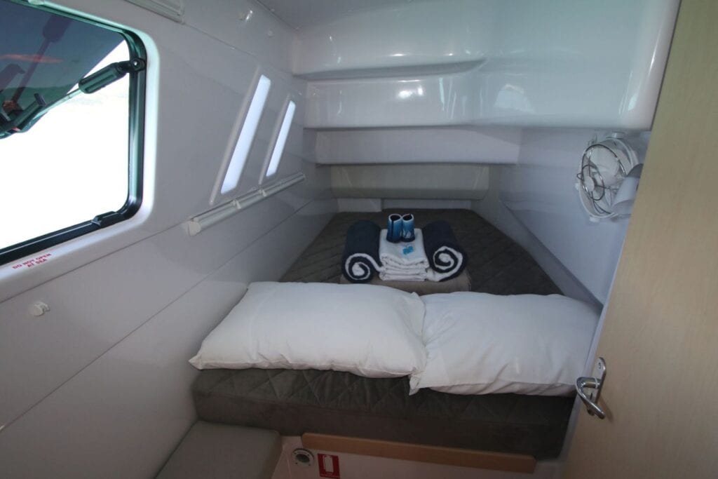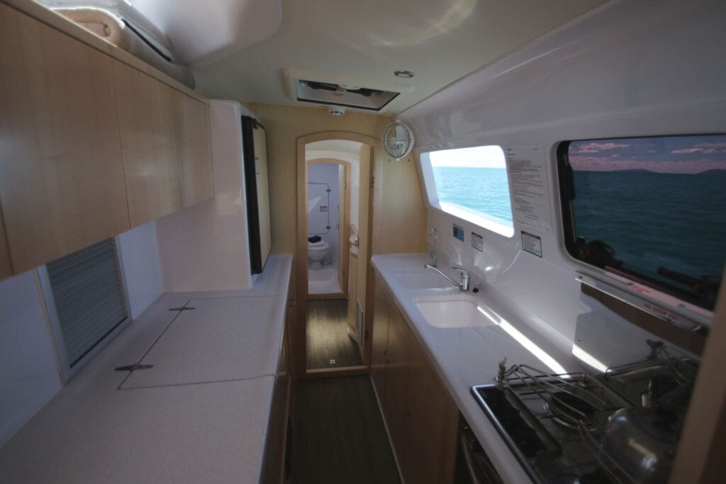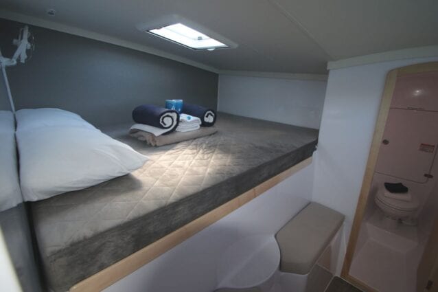 The Seawind 1260.3 will sleep up to eight with three double cabins, two bathrooms and the saloon will accommodate another double. All cabins feature plenty of hatches for ventilation.
