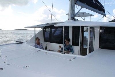 Whitsunday Escape Leopard 44 sailing catamaran cockpit fwd