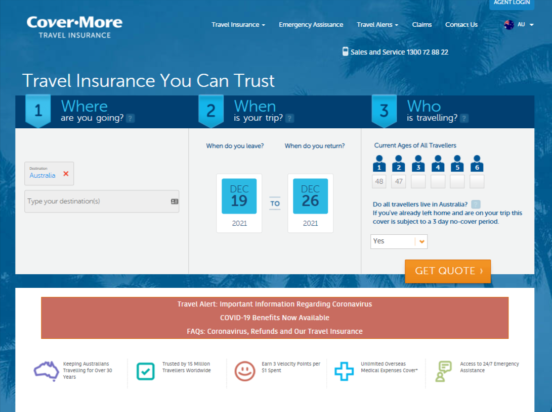 Under the Financial Services Reform Act, we can not legally advise you on insurance matters. However, the staff at Cover-More are available to help you with your questions.